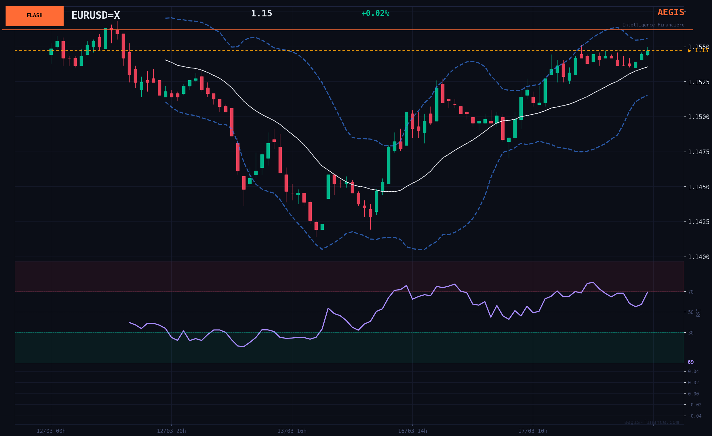 BEARISH Scenario (25% probability): Selling pressure resumes and leads to a clear break of the support at $1.14. Catalysts: a marked rebound of the DXY above 100.5, renewed risk aversion (VIX > 25) or disappointing economic data in the euro zone. The next BEARISH target would then be towards $1.12.