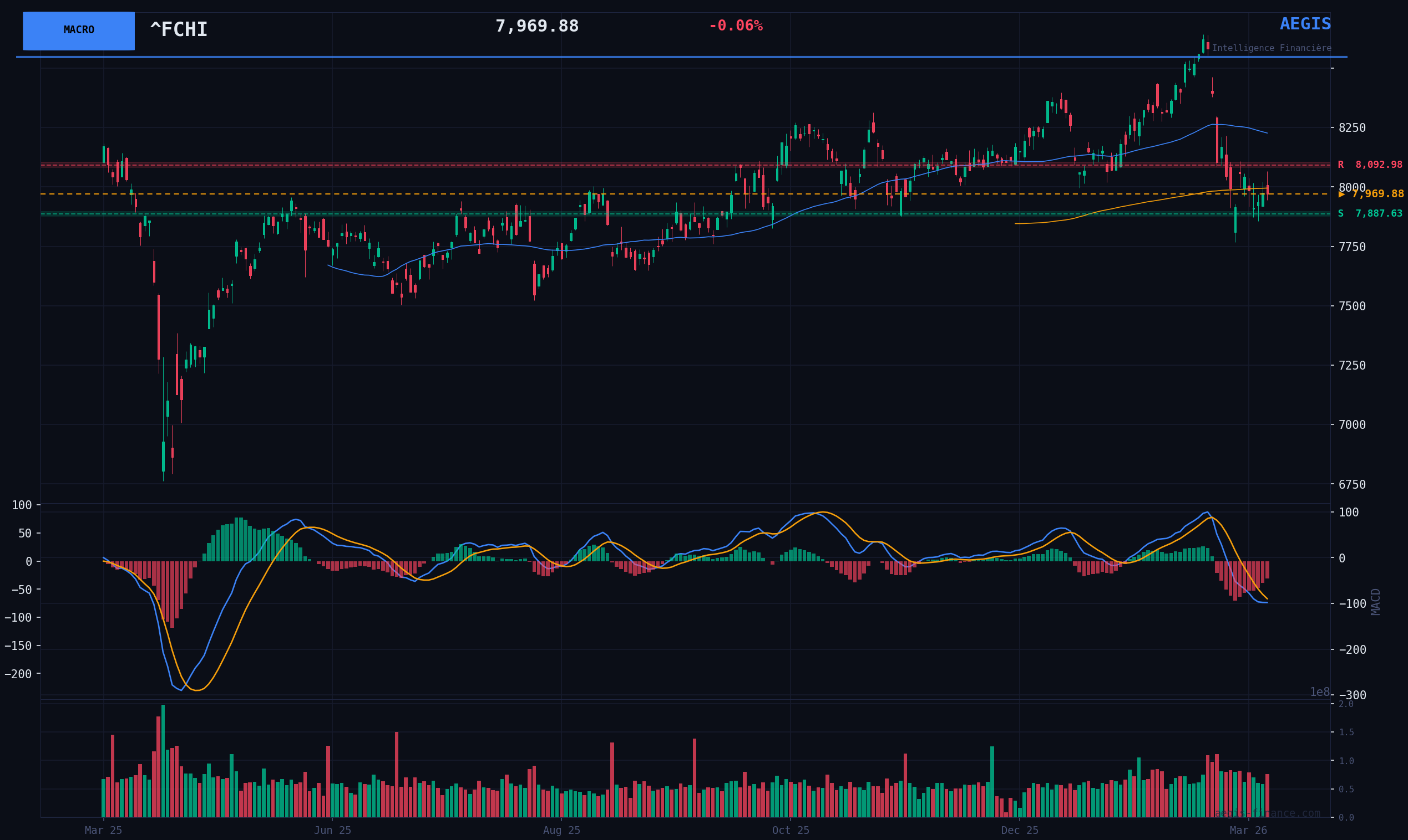 In a CORRECTION regime (SPY below MA50), this NEUTRAL signal on ^FCHI reflects the current uncertainty. The macro risk remains HIGH, with a R/R ratio of 1.5:1 required. The sharp intraday decline justifies caution, despite the RSI being in oversold territory. The CRITICAL geopolitical risk (RAS 78/100) dominates, limiting the BULLISH potential without an independent resilience catalyst.