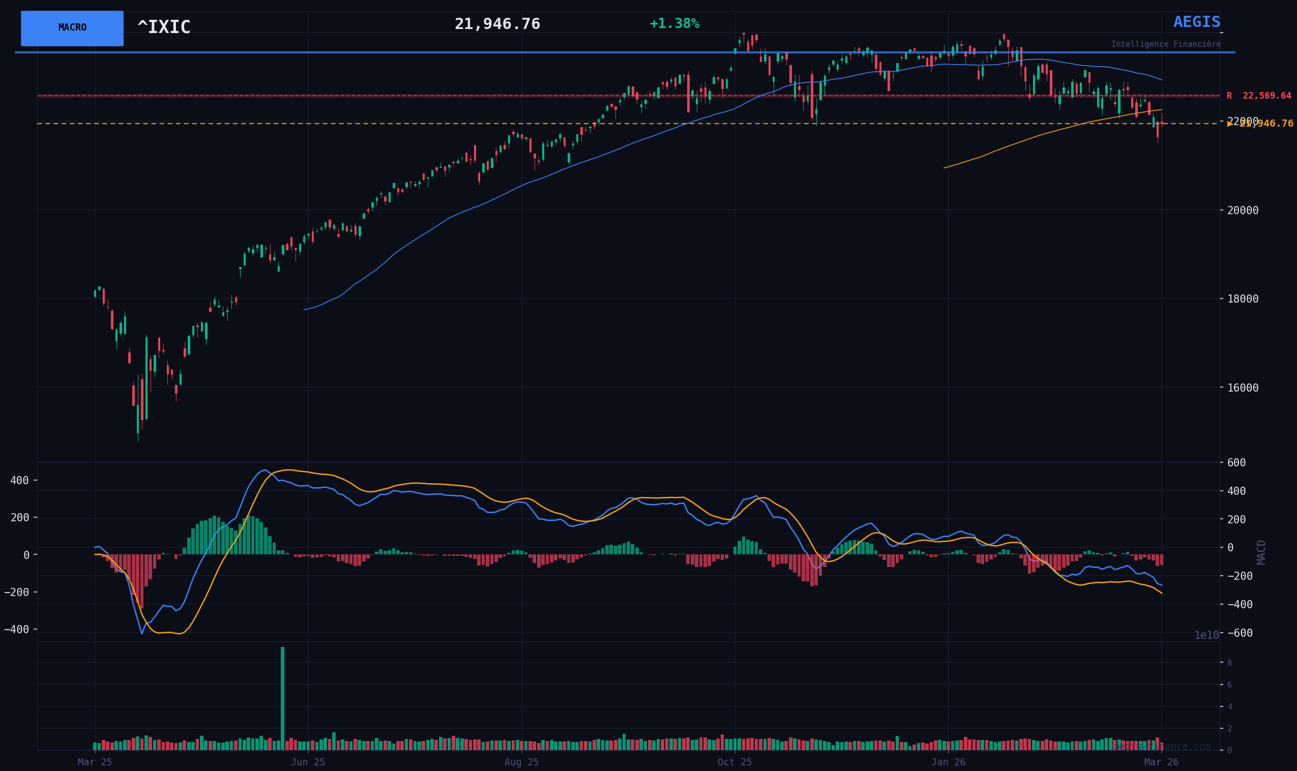 The Nasdaq 100 is operating within a macroeconomic environment characterized by elevated geopolitical tensions, particularly the conflict in Iran. While discussions regarding a potential de-escalation have emerged, the market remains in "risk-off" mode, as evidenced by a VIX at 26.15. The decline in long-term rates (T10Y at 4.33%) and the rise in TLT signal a flight to safety, weighing on risk assets such as technology stocks. Inflationary concerns, exacerbated by the energy crisis, continue to cap upside potential, creating a context of uncertainty that favors consolidation over a clear directional trend.