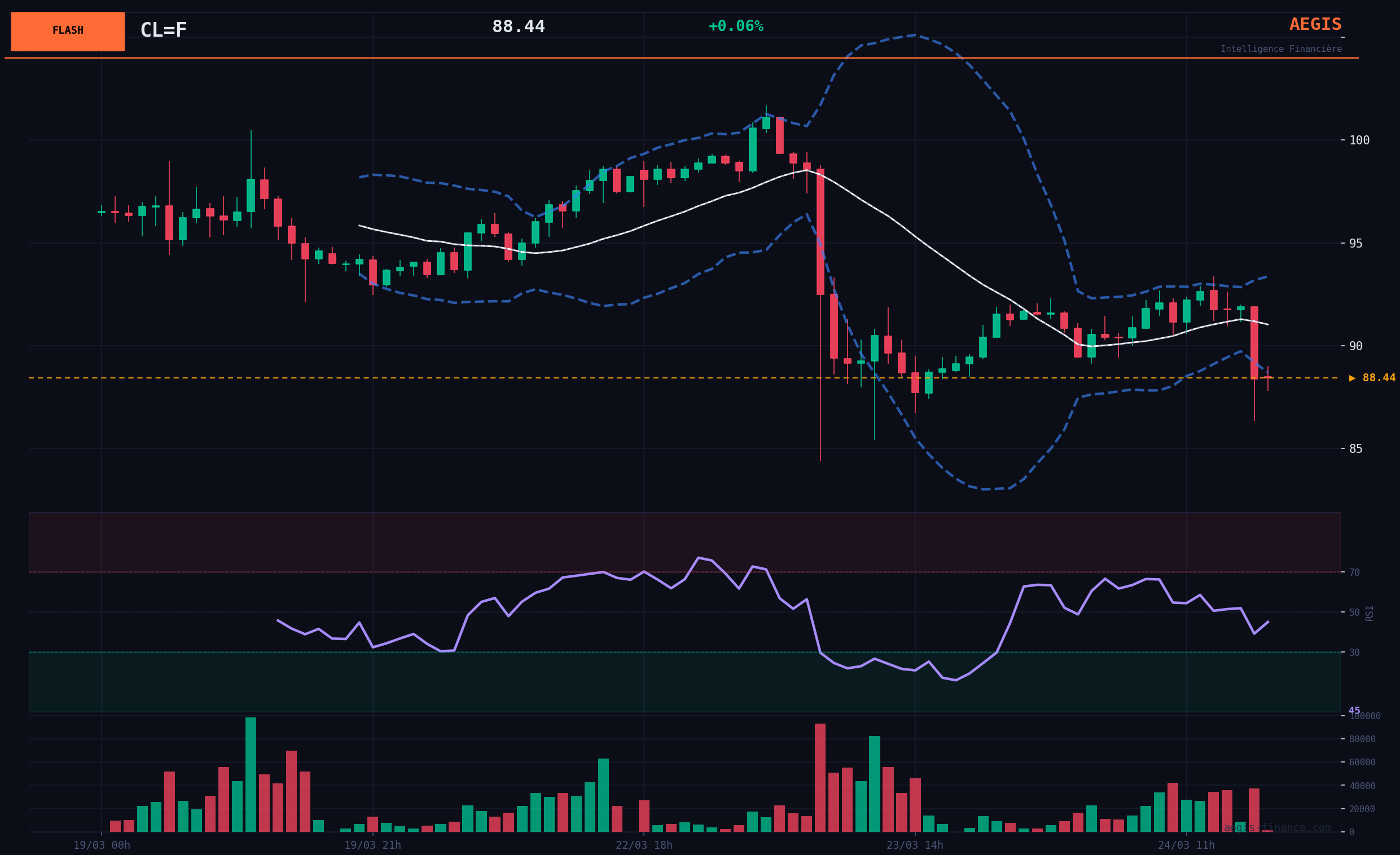 Base Scenario (Neutral) - 45% probability: The market enters a volatile consolidation phase, bounded by the SMA20 support ($85.35) and the psychological resistance of $95. Operators are digesting the recent fall and awaiting more clarity on the geopolitical front. The current low volume supports this wait-and-see scenario.