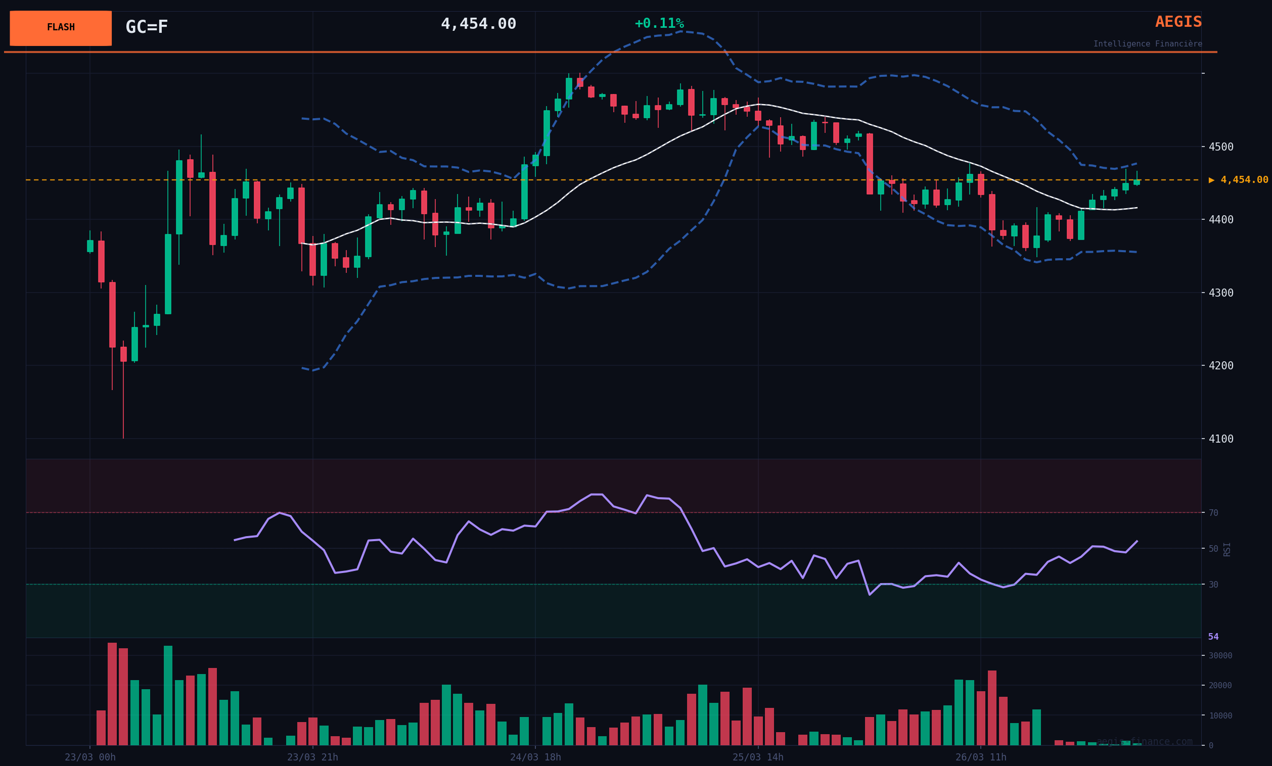 - BEARISH Scenario (25%): Rebound Failure. The current rebound is just a short covering. The general weakness of the equity markets (TRANSITION regime) and a potential rise in the US dollar weigh on Gold, which breaks the 4370$ support to test the 4100$ zone.
