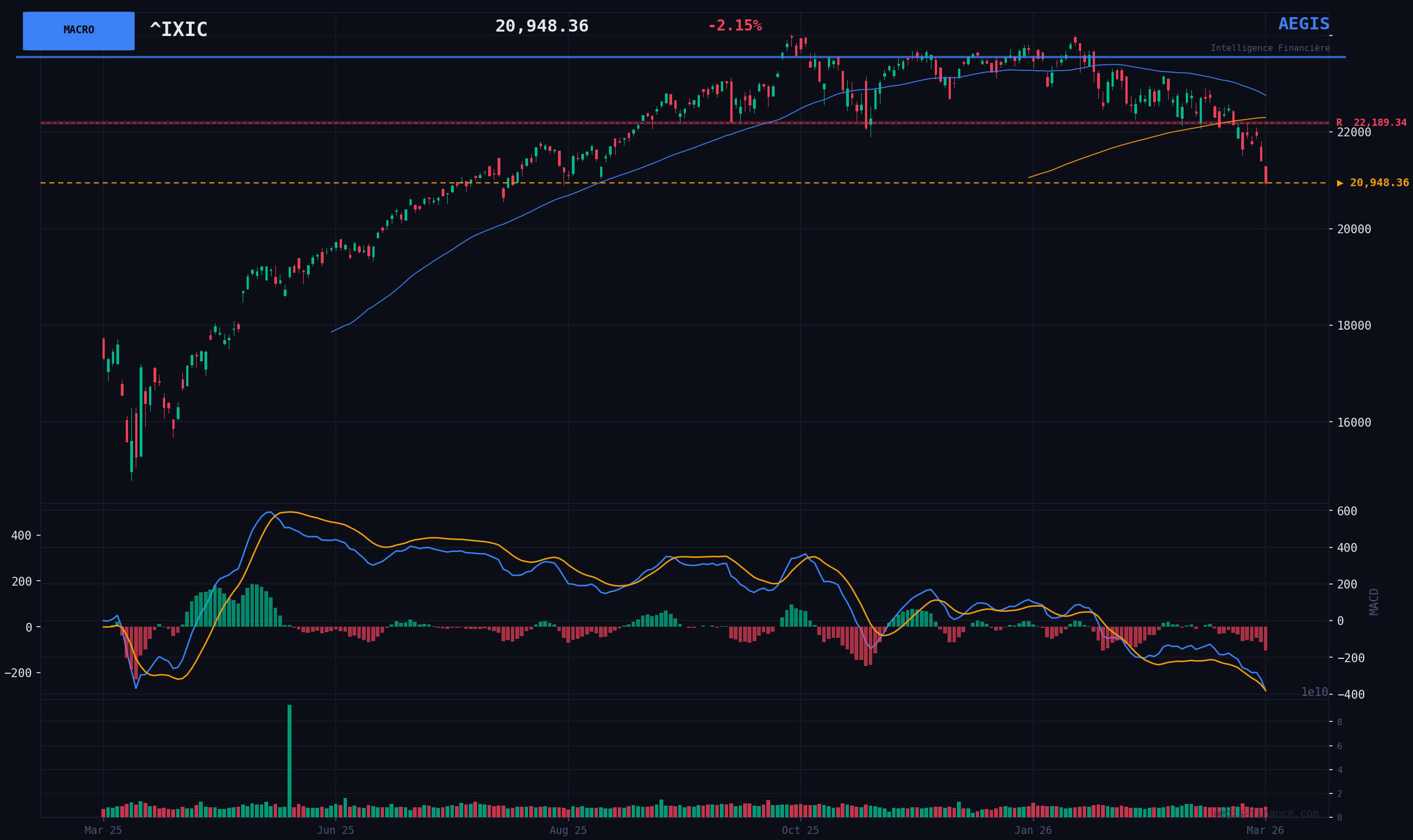 Base Scenario (20% probability): The index finds temporary support around the 20900 pts area, leading to a phase of lateral consolidation. This technical rebound would be favored by the extreme oversold condition (RSI), but would remain capped by technical resistances and a high VIX.