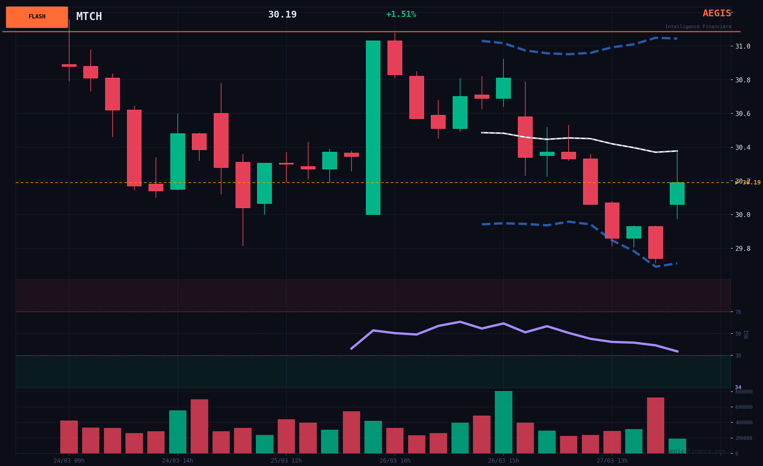 BULLISH Scenario (45%) : MTCH maintains its relative outperformance and tactically rebounds from the key support of $29.55. Catalysts include the resilience of the technology sector (despite the macro context), potential for a buyback after years of share price weakness, and a valuation that could attract long-term investors. A stabilization of the VIX or an easing of geopolitical tensions could also support this scenario. Recent news regarding AI integration and the app economy are underlying positive factors.