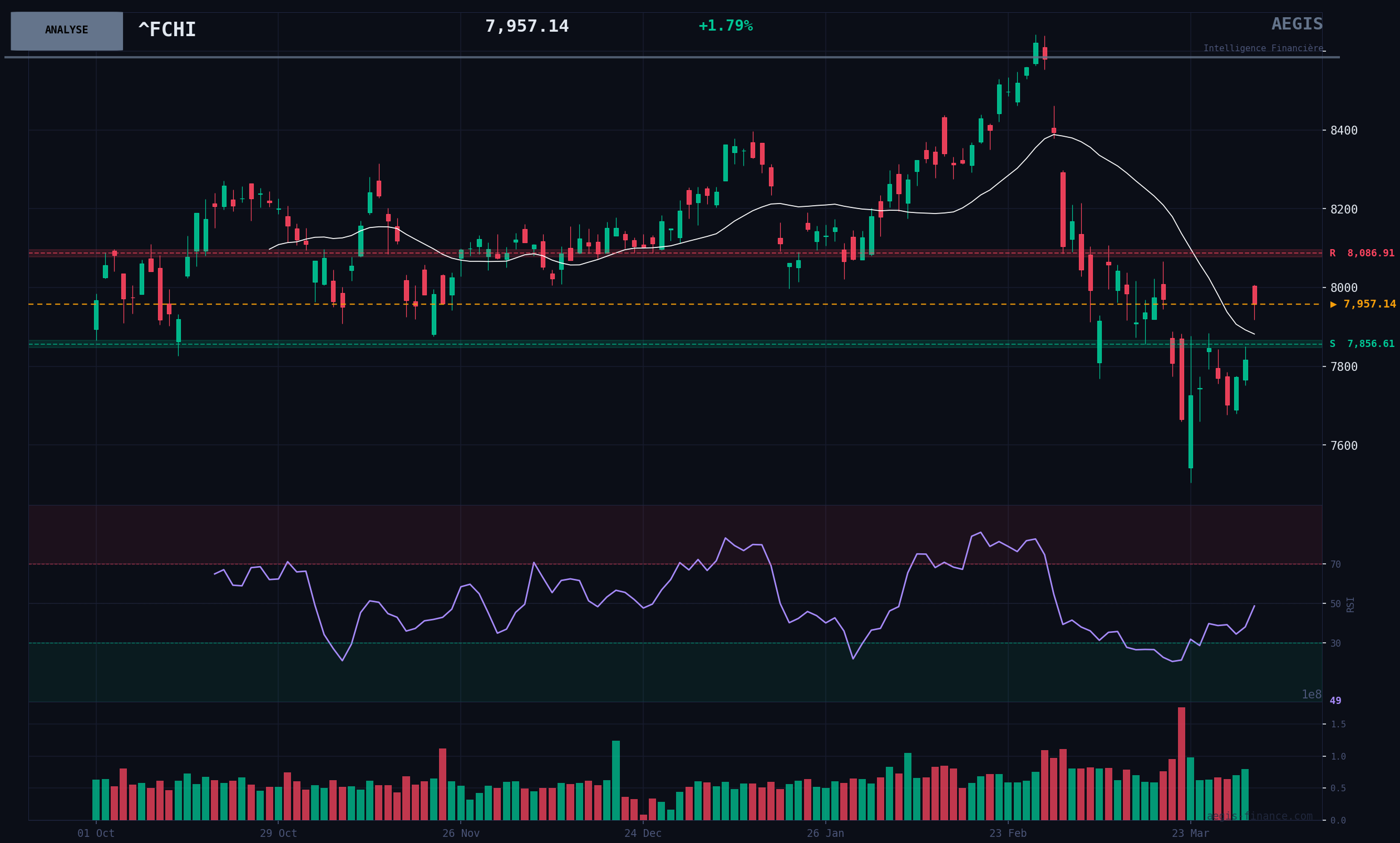 In the absence of new shocks, the index could consolidate in a range delimited by the SMA20 (support at 7881 pts) and the SMA200 (resistance at 7999 pts). The market would remain on hold, digesting the flow of news in a high volatility environment.