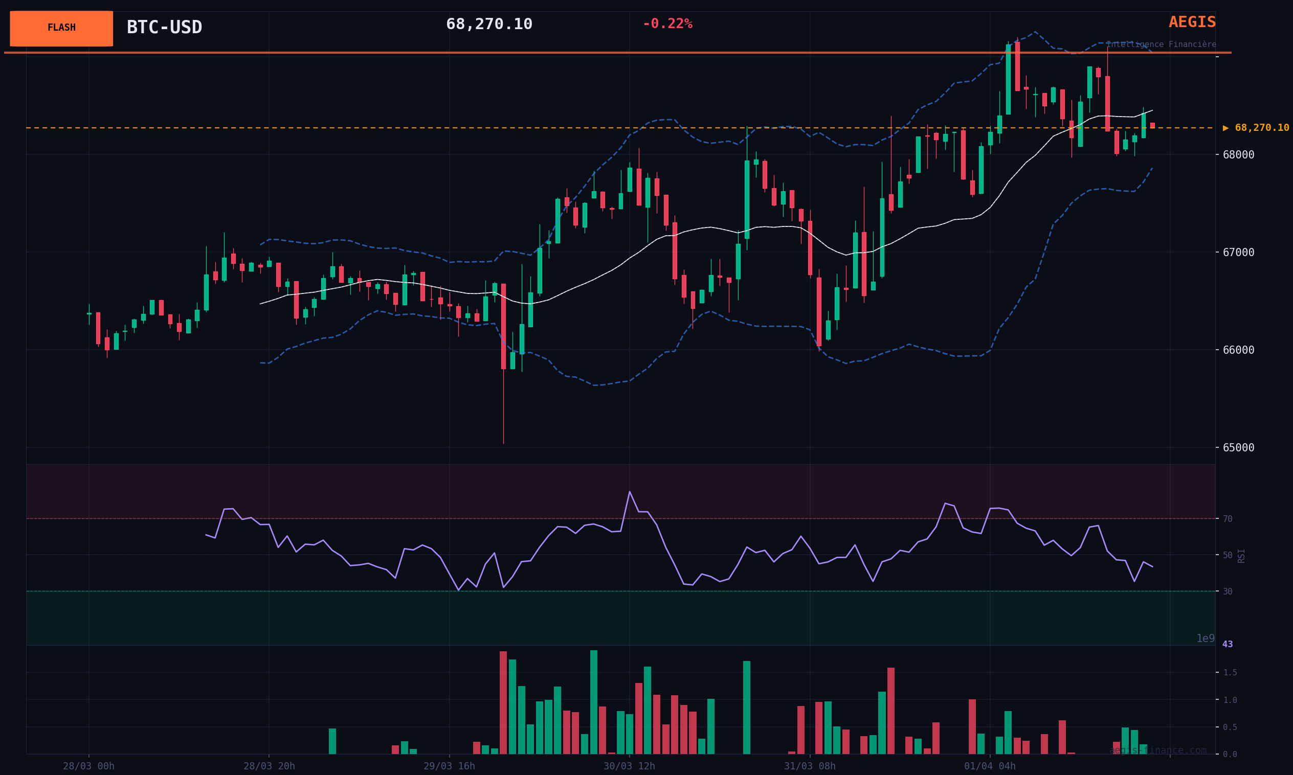 In a market regime in TRANSITION and a context of critical geopolitical risk (RAS 79/100), any directional position is high risk. The contradictory signals between a sentiment of extreme fear (historically a low point) and a degraded technical and macroeconomic structure impose a posture of neutrality. The signal is a recommendation to remain neutral pending a clear resolution of the current consolidation. The signal is triggered on a decisive daily close outside the $65,000 - $70,000 range to initiate a directional position. The objectives would then be the resistance at $75,988 (TP2) in the event of a BULLISH breakout, or the support at $60,074 in the event of a BEARISH breakdown. Recommended sizing: Null position (observation).