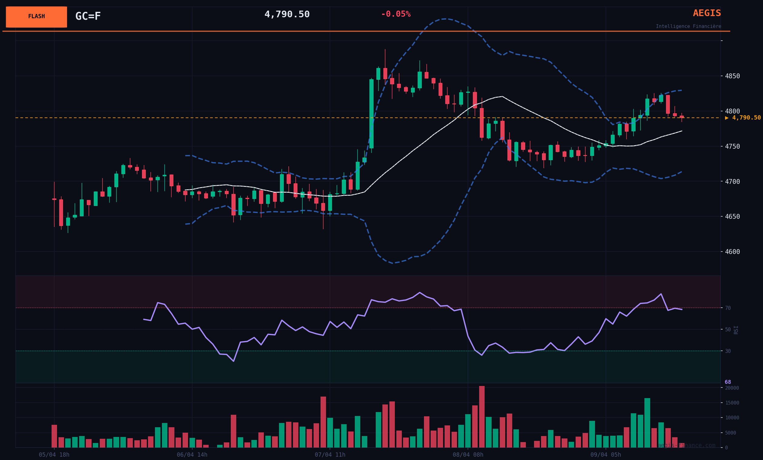Technically, the current price of 4790.50$ is comfortably above its 20-day simple moving average (SMA20) at 4695.36$ and its SMA200 at 4143.13$, confirming a well-established BULLISH trend across all time scales. The Relative Strength Index (RSI) at 57.88 indicates healthy BULLISH momentum, without signs of excessive overbuying.
