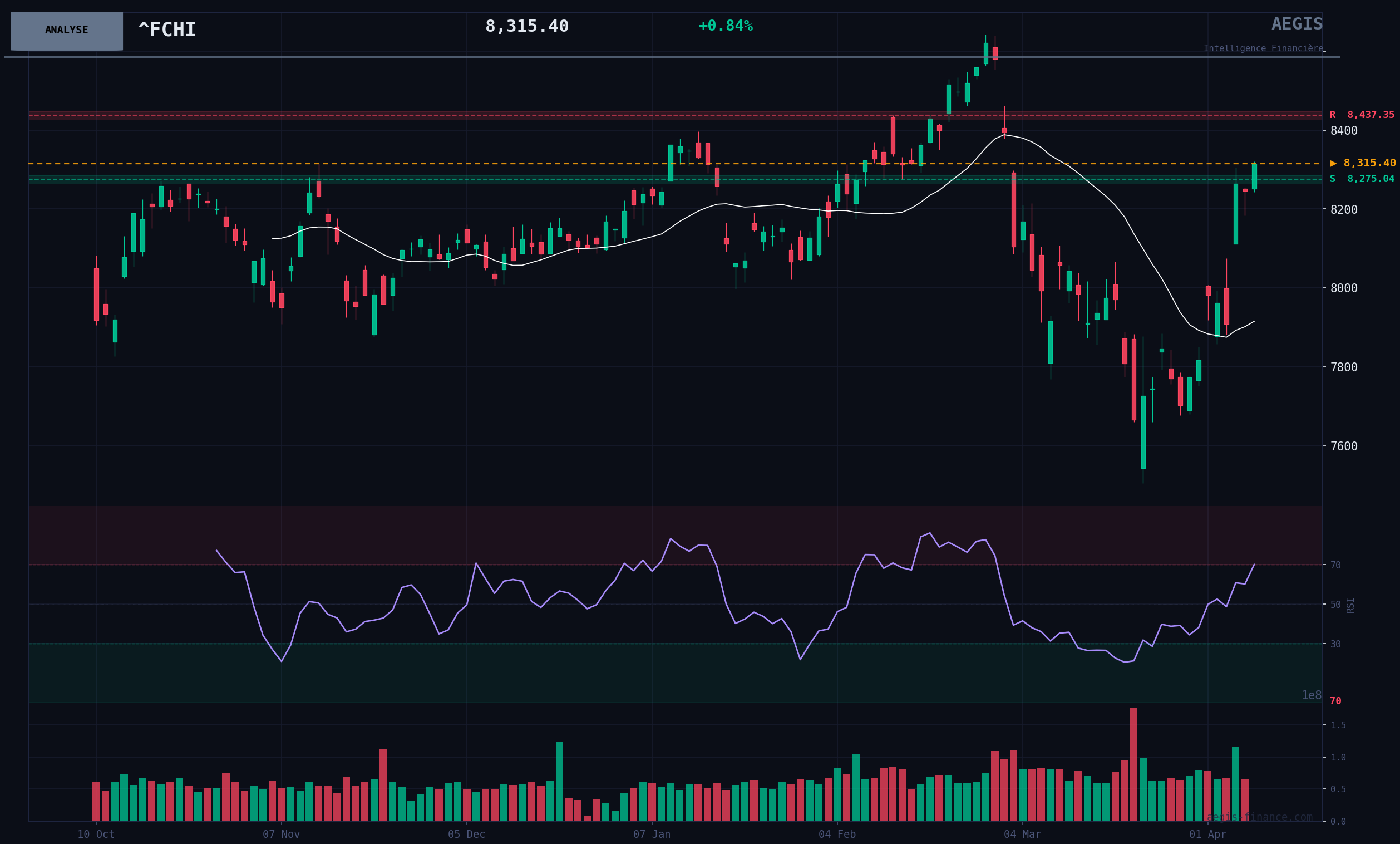 In a BULL regime (SPY > MA50 > MA200) but with a CRITICAL RAS (75/100), this NEUTRAL signal on ^FCHI reflects macroeconomic uncertainty. Macro risk remains high due to geopolitical and energy tensions. The signal triggers on a confirmed break of the resistance at 8642.23 points. TP1: 8500 points (partial securing). TP2: 8642.23 points (final target). Stop-loss at 7505.27 points. Recommended sizing: Reduced position (0.5x) due to the critical RAS.