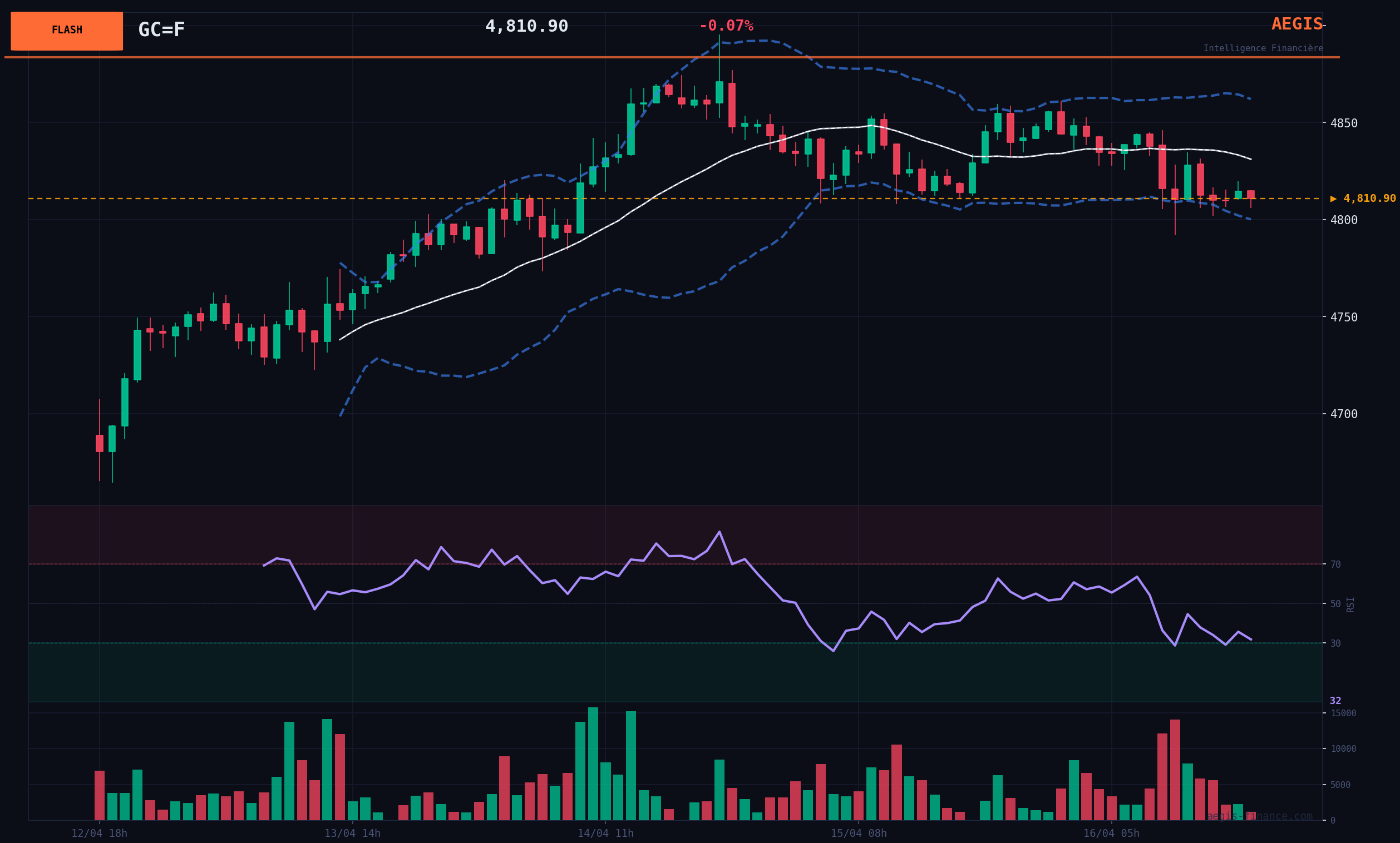 BEARISH Scenario (10%): The volume/price divergence marks a market top. A lasting peace agreement in the Middle East and a technical rebound of the DXY trigger profit-taking. The price breaks the SMA20, opening the way for a deeper correction towards the support of $4100.