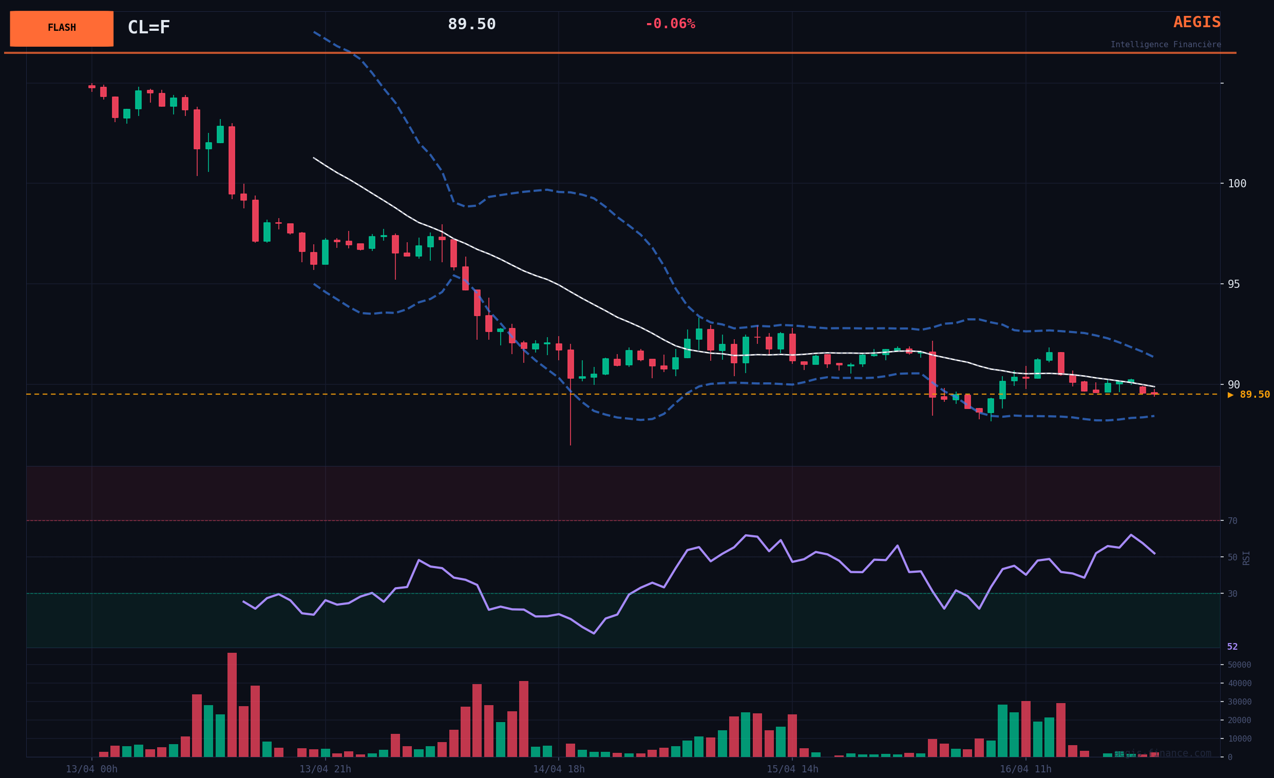 BULLISH Scenario (55%): The correction proves to be a buying opportunity. The ceasefire is fragile and geopolitical tensions resume, bringing the risk premium back into the market. The tension on physical supply (backwardation) becomes the main driver again. Catalysts: Ceasefire breakdown, failure of US-Iran negotiations, persistent weakness of the DXY. Target: return towards the $119 resistance.
