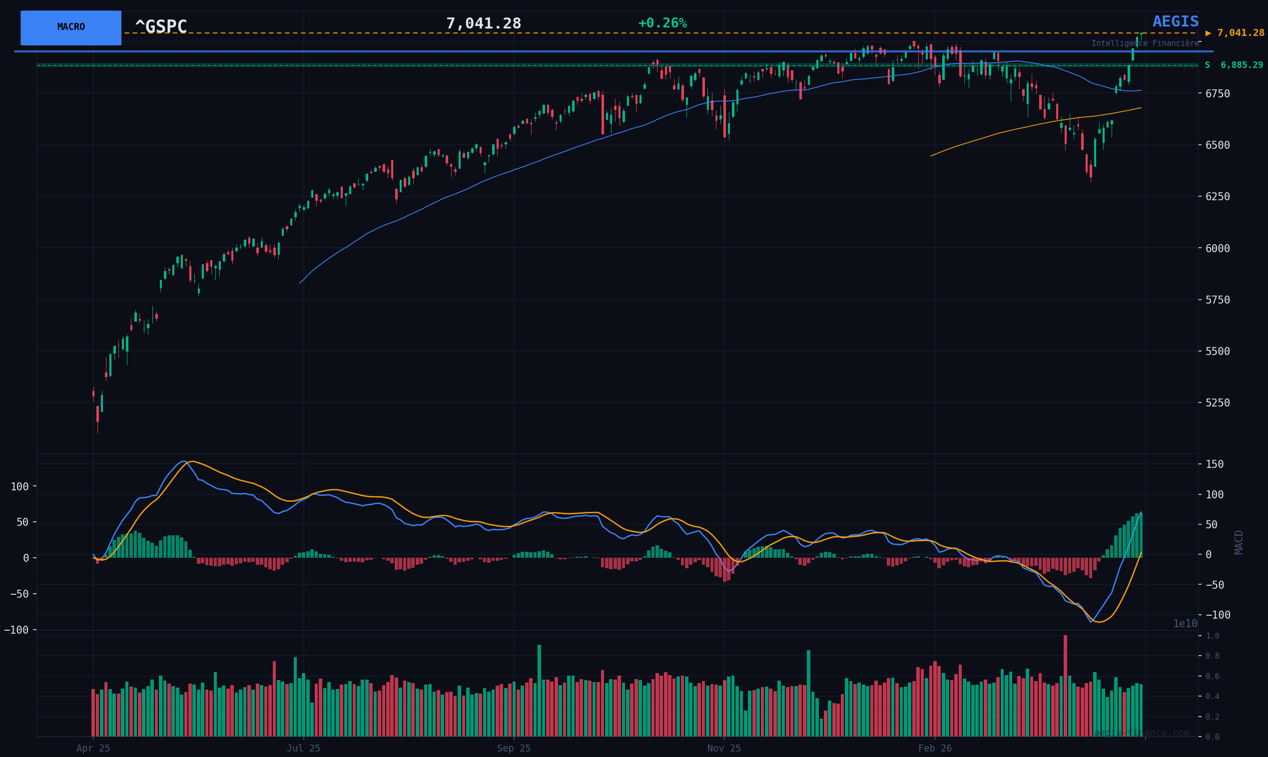 The S&P 500 is evolving in a contrasting macroeconomic environment. On the one hand, the market regime is clearly BULLISH, supported by a low VIX at 17.67 and a weakened DXY, conditions typically favorable to risk assets. On the other hand, this context is overshadowed by a geopolitical risk deemed high (RAS score at 74/100), mainly fueled by tensions in the Middle East and uncertainties about energy supply. This dichotomy creates a precarious balance where positive technical momentum clashes with significant macroeconomic headwinds, encouraging caution despite the underlying trend.