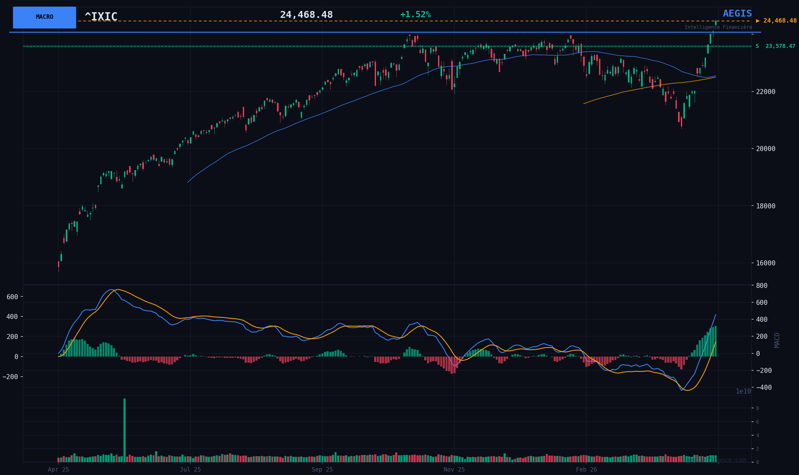 BEARISH Scenario (Bear) - 20% probability: An exogenous shock, such as a renewed geopolitical escalation or a disappointing tech giant earnings release, triggers a wave of profit-taking. Technical overheating amplifies the correction, quickly bringing the index back towards its 20-day simple moving average (SMA20) around 22377 points. Catalyst: Break of the SMA20 on a daily close.