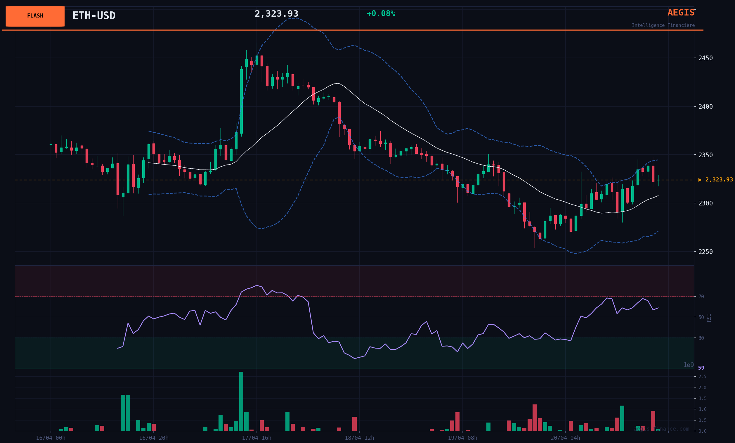 From a technical perspective, Ethereum is evolving within a BEARISH bottom structure, as evidenced by its position at -18.3% below its 200-day moving average (SMA200), located at $2845. This moving average constitutes a major structural resistance. In the short term, the price is executing a notable technical rebound (+2.67% in the session) after two days of significant decline (-2.89% and -3.66%). This rebound began on the 20-day moving average (SMA20 at $2231), which acts as dynamic support. Volumetric pressure is high, with daily volumes at 111% of the monthly average, confirming operator interest at current levels. The RSI at 61.54 indicates a resumption of BULLISH momentum, without being in overbought territory.