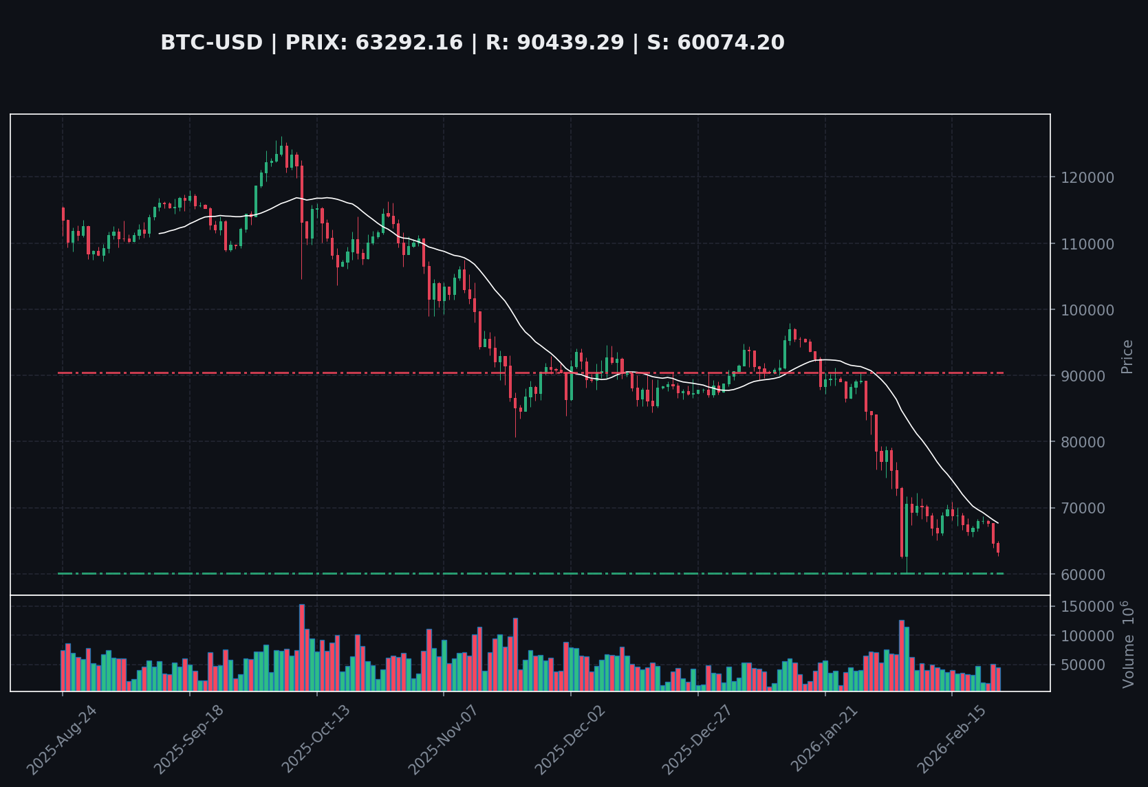 Le Bitcoin (BTC-USD) se négocie actuellement à 63292.16, avec un RSI(14) de 29.74 indiquant une situation de survente. Le prix est significativement en dessous de la SMA(200) à 98402.23. Le support à 30 jours est à 60074.20, et la résistance à 30 jours est à 90439.29.