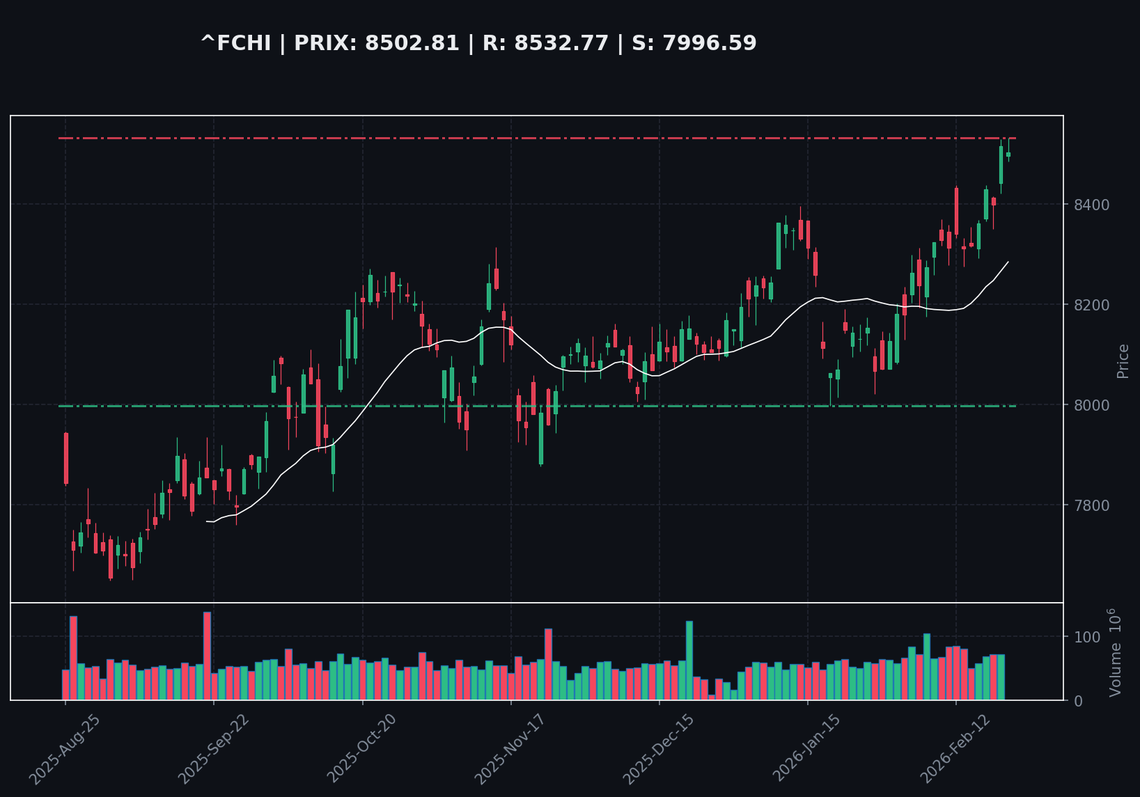 NEUTRE. Niveau d'invalidation : Une cassure confirmée de la résistance à 8532.77 invaliderait cette neutralité, tout comme une cassure du support à 7996.59.