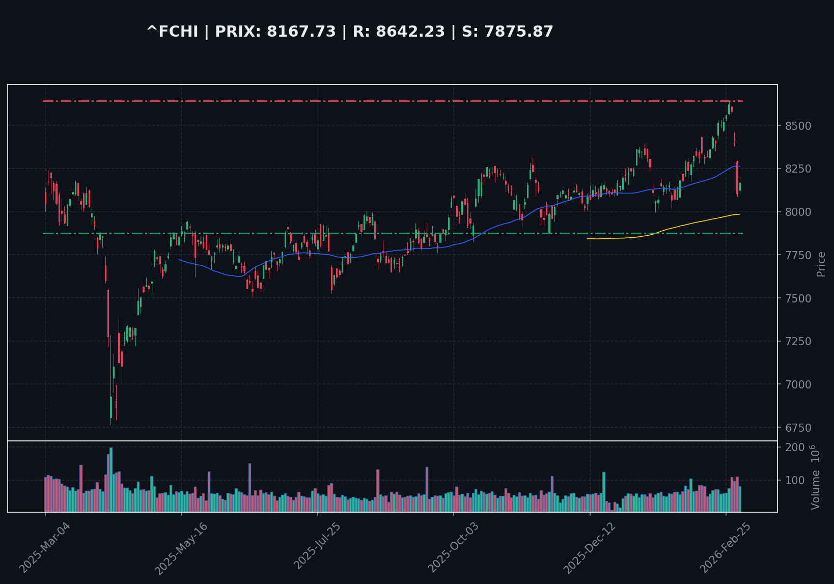 Le verdict est BAISSIER. La structure technique a été sévèrement dégradée par la distribution massive de la veille. Le rebond actuel manque de conviction et s'inscrit dans un environnement macroéconomique défavorable. La pression vendeuse reste dominante tant que l'indice évolue sous la SMA20. Une rupture du support à 8020.75 pts ouvrirait la voie à une nouvelle vague de capitulation en direction de la SMA200.