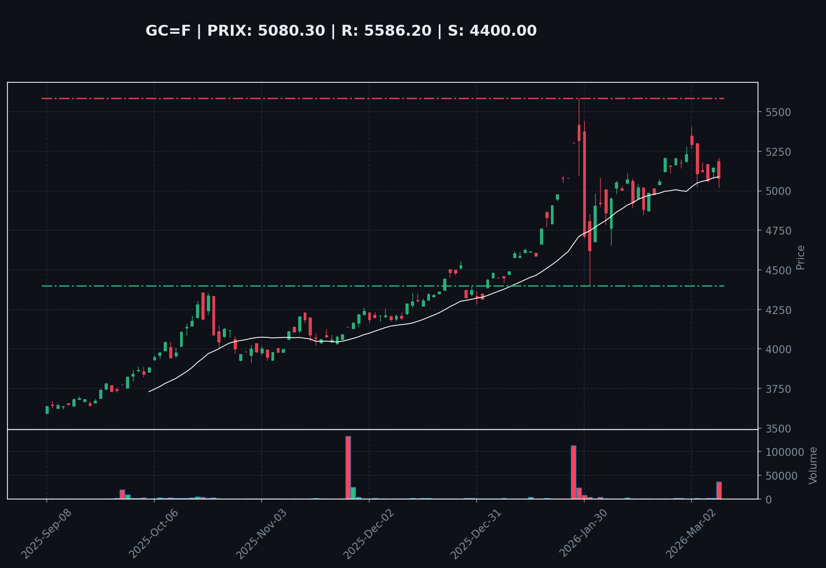 🔴 BAISSIER. La confluence d'une rupture technique sous la SMA(20) et d'une explosion volumétrique sans précédent constitue un signal de vente de haute conviction. La pression vendeuse institutionnelle est indéniable et prime sur les narratifs géopolitiques. Le marché est en phase de rebalancement, liquidant les positions sur l'or au profit du dollar. Tant que le prix se maintient sous la zone des 5090 $, le risque d'une accélération vers le support majeur des 4400 $ est élevé. La SMA(20) devient la nouvelle résistance à court terme.