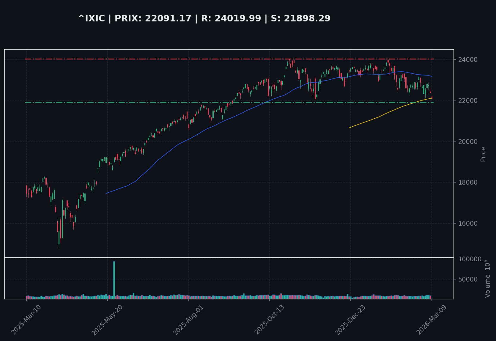 🔴 BAISSIER. La convergence d'un environnement macroéconomique dégradé (choc pétrolier) et d'une structure technique fragile place l'indice Nasdaq dans une position de vulnérabilité extrême. L'actif est sur un support vital. L'absence de réaction acheteuse sur ce niveau clé est un signal de faiblesse. Une clôture confirmée sous la zone des 22088 pts invaliderait le support long terme et ouvrirait la voie à une accélération baissière significative. La stratégie de moindre résistance est à la baisse jusqu'à preuve du contraire.