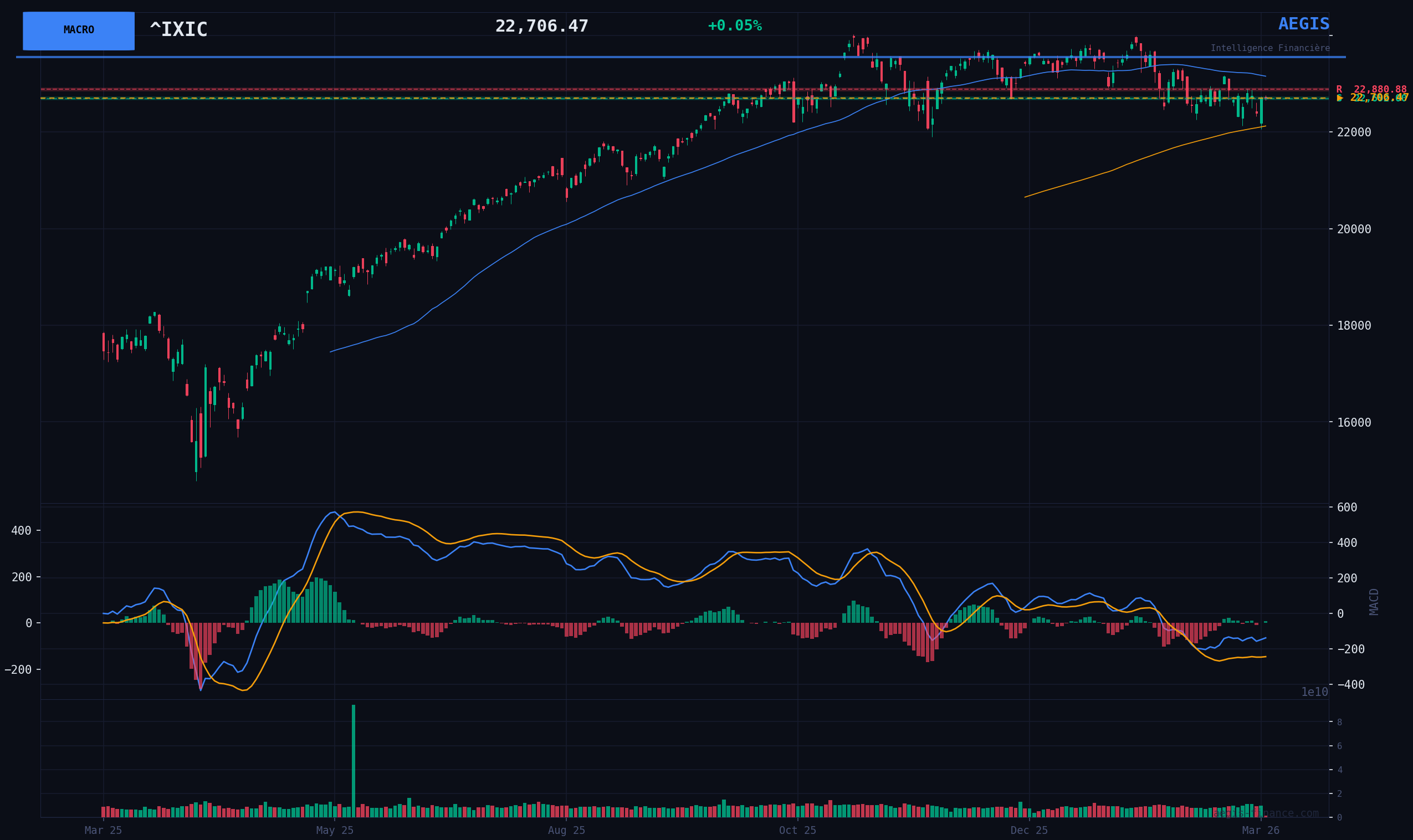 Le verdict est NEUTRE. La dynamique actuelle est une pause technique au sein d'une tendance de fond haussière, mais le contexte macroéconomique est trop incertain pour justifier une position directionnelle forte. La très faible volumétrie du jour confirme l'absence de conviction des opérateurs. Nous restons en observation, privilégiant la surveillance des niveaux techniques clés : un franchissement de la SMA20 signalerait une reprise du momentum haussier, tandis qu'une rupture du support à 22061 pts indiquerait une inversion de la dynamique à court terme.