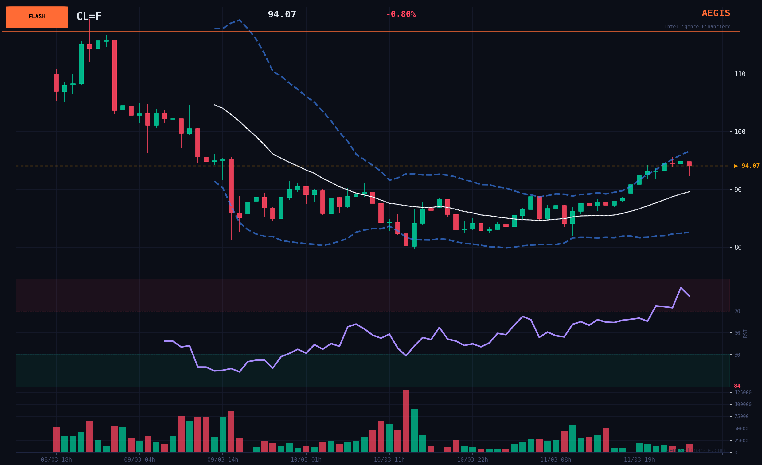 VERDICT AEGIS Verdict: BULLISH. The current geopolitical shock is the dominant factor, overshadowing other macroeconomic considerations. The price structure reflects a brutal reassessment of supply risk. Although technical indicators are overheated, any attempt to short this dynamic is high risk. The path of least resistance is upward as long as the threat to supply persists. We favor long exposure by adjusting the stop to protect against a sudden reversal.