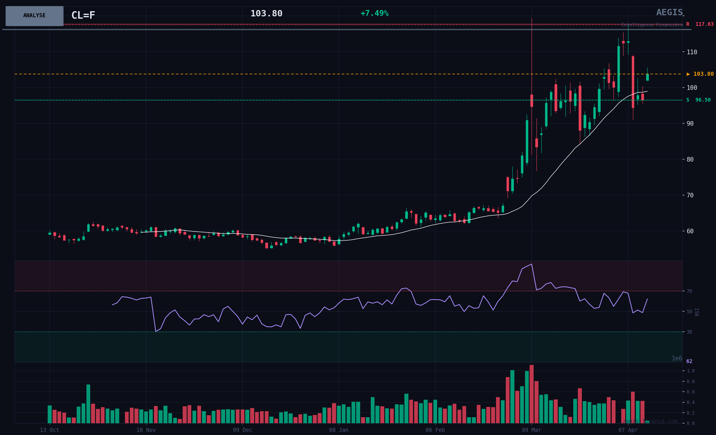 - Scénario Bull (70%) : L'escalade des tensions au Moyen-Orient se poursuit. Le blocus du détroit d'Ormuz, même partiel, se matérialise, créant un choc d'offre tangible. Le prix accélère vers la résistance des 119.48$ et pourrait la dépasser si la crise s'installe dans la durée.