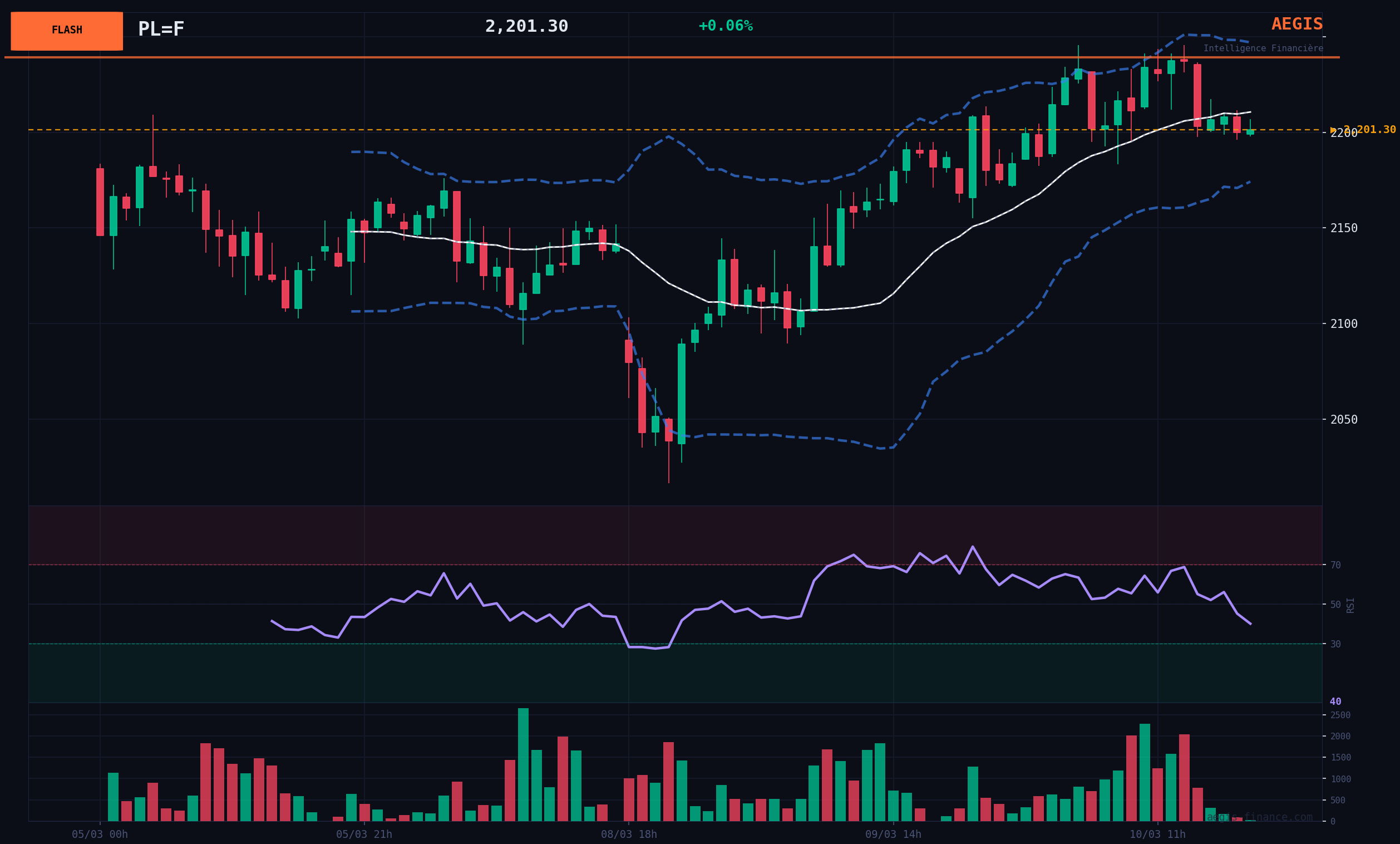AEGIS VERDICT The underlying momentum is BULLISH, but the day's volumetric signal imposes tactical caution. The BULLISH gap on extreme volume is a powerful signal that can precede either an explosive continuation or a violent reversal. We adopt a NEUTRAL position in the short term, awaiting the resolution of this institutional battle. Maintaining above $2170 is crucial for the continuation of the BULLISH scenario. The risk/reward ratio remains very attractive for a long positioning, provided a tight protective stop is used.