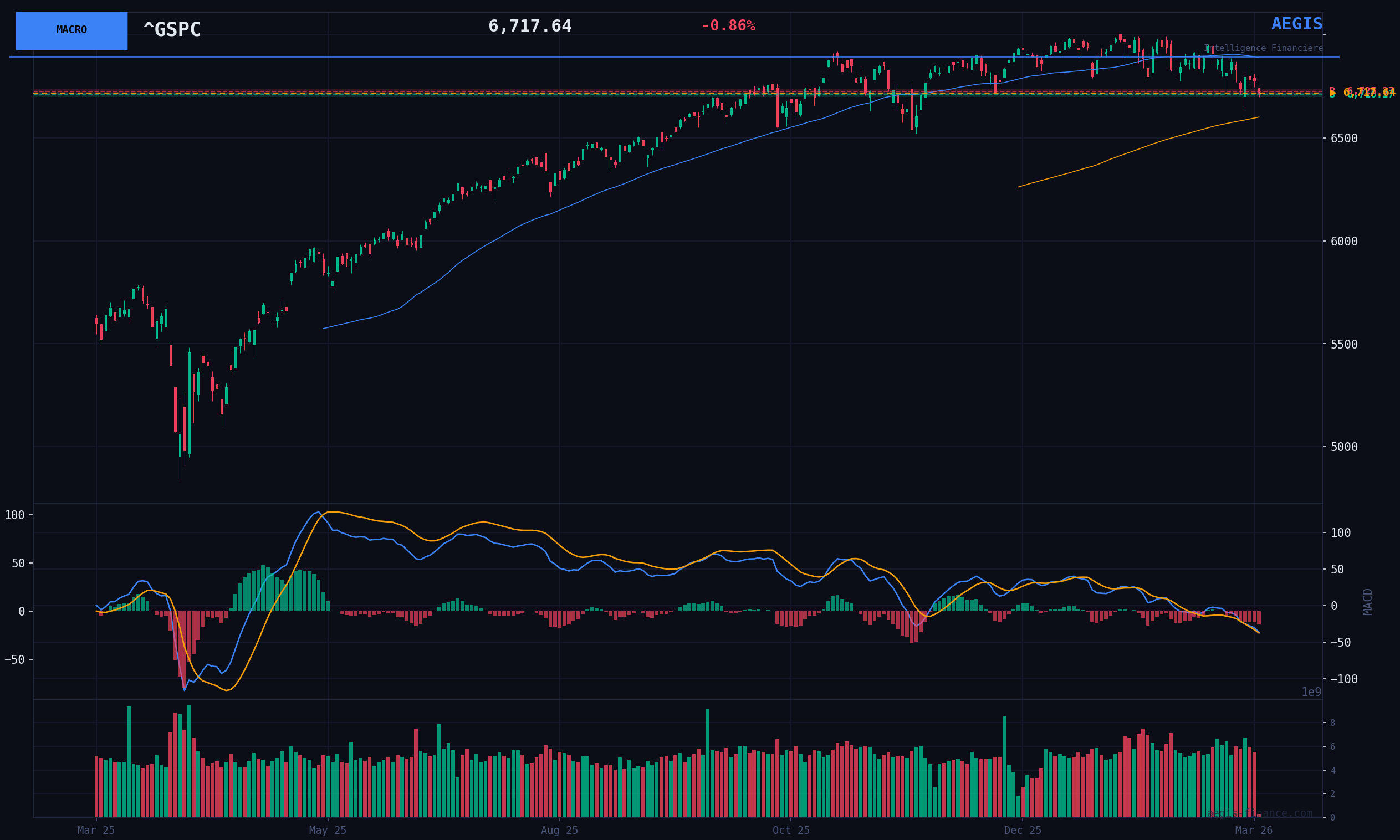 - Scénario Baissier (Probabilité: 35%): Une nouvelle escalade du conflit ou des données d'inflation plus élevées que prévu provoquent une rupture franche du support des 6600 points (SMA 200). Ce bris technique déclencherait des ventes algorithmiques et une accélération baissière vers de nouveaux plus bas.