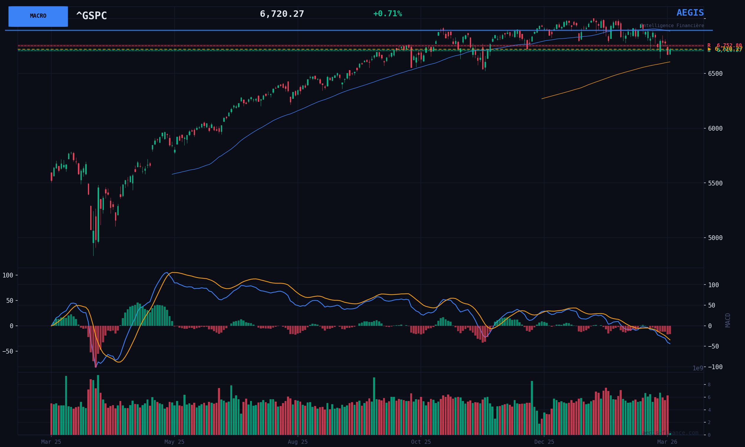 - AEGIS VERDICT In a CORRECTION regime (SPY below MA50) and with a high VIX at 25.5, the market shows signs of precarious stabilization on a major technical support. The signal is deemed NEUTRAL. Although the index is holding the critical zone of 6636 points, the current rebound lacks volumetric conviction and faces significant macroeconomic headwinds. The potential Risk/Reward ratio of 1.5:1 is insufficient to justify an aggressive BULLISH position in this market environment. Caution is advised, a volatile consolidation phase is the most likely scenario.