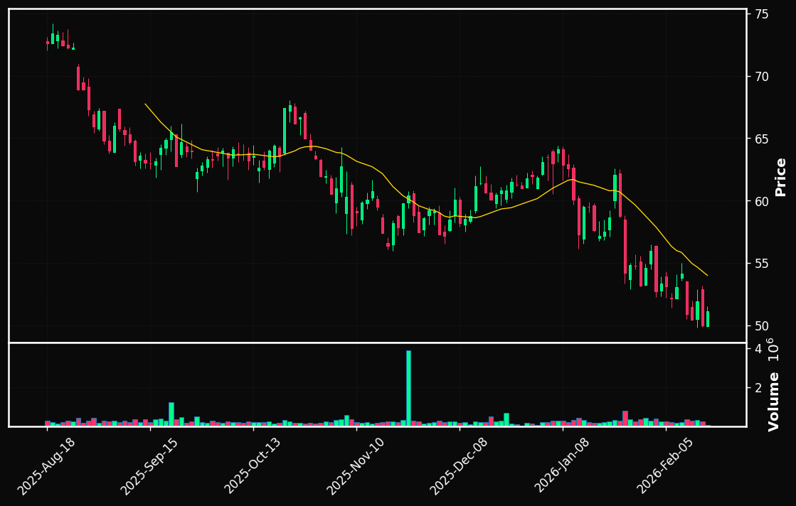 En l'absence de catalyseurs fondamentaux clairs, l'attention se porte sur les niveaux techniques. La tenue du support à 49.84€ est cruciale. Une cassure validerait un signal baissier à court terme. La neutralité actuelle appelle à la prudence.