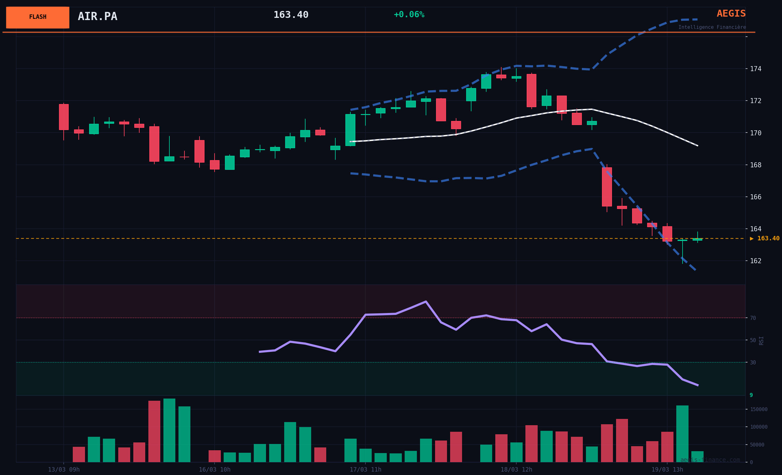 Scénario Haussier (10% de probabilité) : Ce scénario est très peu probable. Il nécessiterait une résolution rapide des tensions géopolitiques, un retournement brutal du sentiment de marché (VIX sous 20) et la reconquête du niveau de 177.00€ (SMA20). Les bonnes nouvelles microéconomiques (commandes) ne suffisent pas actuellement à contrer les vents contraires macroéconomiques.