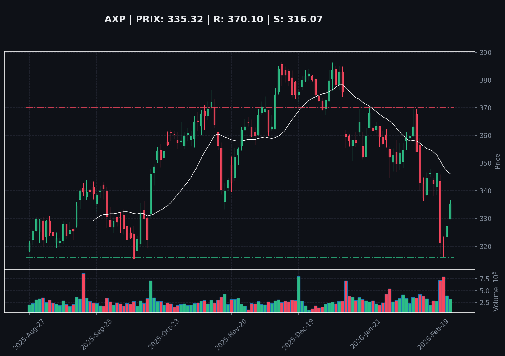 Dans ce contexte, AXP démontre une force relative significative. Tandis que le marché élargi subit des pressions vendeuses, l'actif absorbe positivement son actualité microéconomique. Il n'y a aucun signe de "Sell the News" ; au contraire, on observe une construction de prix haussière depuis l'annonce. Ce découplage suggère un possible rebalancement sectoriel au profit des financières de qualité.