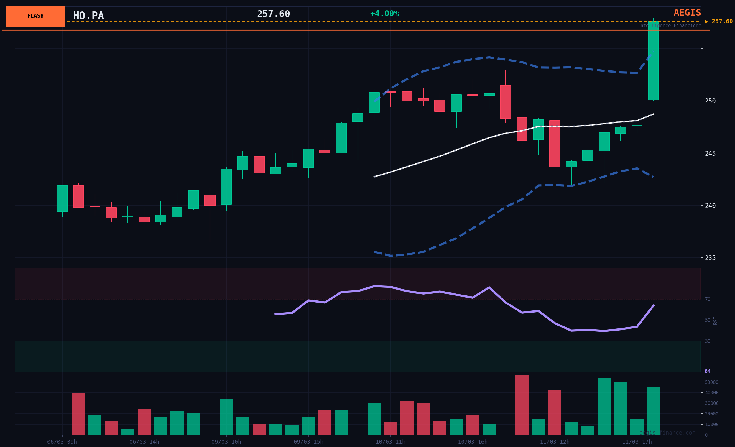 - Scénario Haussier (Probabilité : 65%) : L'absorption des nouvelles positives se poursuit, alimentant le momentum. Le prix s'installe durablement au-dessus de 255 € et accélère en direction de la résistance à 270.70 €, avec une extension possible vers 275 €. Catalyseur : Clôture journalière confirmée au-dessus de la SMA20.