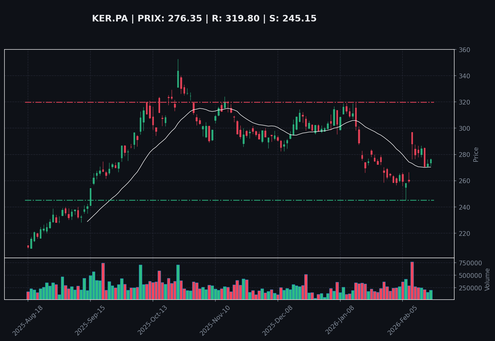 - Scénario haussier : Si Kering franchit la résistance des 319.80€, l'objectif suivant serait la zone des 340€.
