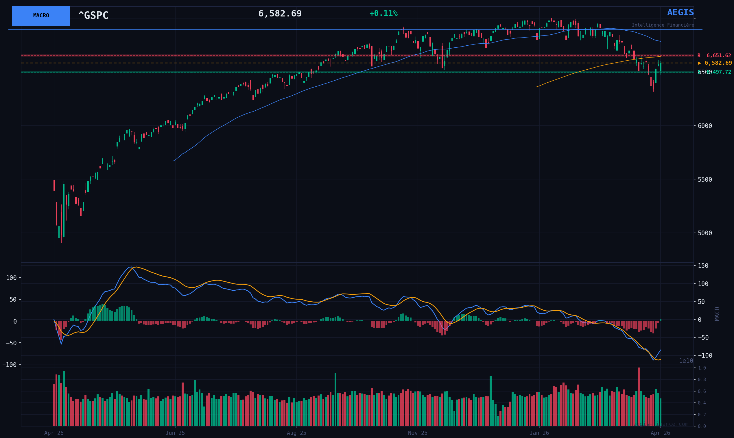 Scénario Haussier (10% de probabilité) : Une cassure nette et confirmée en clôture hebdomadaire au-dessus de la SMA200 (6644.60 pts) ouvre la voie à un retour vers la résistance des 7000 pts. Ce scénario, très peu probable actuellement, nécessiterait un catalyseur exceptionnel comme un accord de paix durable et vérifiable en Iran, couplé à un pivot accommodant des banques centrales.